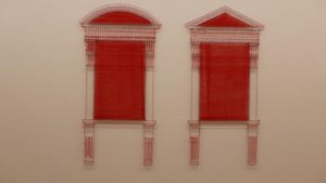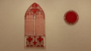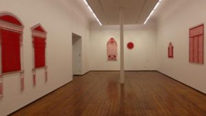 A tal punto il rapporto tra visitatore e opere si basa sulla percezione visiva ben sollecitata dall’intersecarsi delle traiettorie di fili rossi il cui sovrapporsi alimenta trame dall’infinita percorrenza.