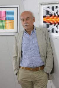 Artista di spicco del panorama italiano contemporaneo che vive e lavora a Legnano, classe 1943, Zaffaroni ha sempre caratterizzato il suo percorso di ricerca all’insegna della sperimentazione di nuovi linguaggi e mezzi di comunicazione creativa, focalizzandosi più sull’interazione cromatica del fluorescente tra razionalità e sensibilità attraverso l’accostamento e l’intersecazione di nastri cromatici a gradiente fluorescente che danno fenomeni percettivi e cinetici sempre differenti.