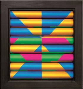 Milano – “La peculiarità dei miei lavori, dettati dal bagliore dei fluorescenti” consiste anche nel voler attrarre lo sguardo dell’osservatore e renderlo partecipe, attraverso il suo movimento, alla ricerca della mutevole cromo-geometria composta”.