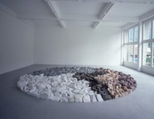 Nel corso di percorrenze in paesaggi disabitati e selvaggi, l’artista britannico ha realizzato sculture utilizzando gli elementi forniti dalla natura cambiando radicalmente l’idea di scultura concepita in spazi aperti; da lui prende avvio la Land Art.