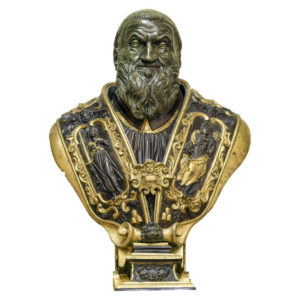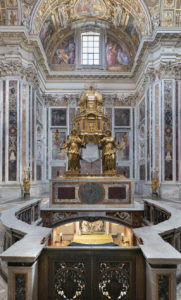 Nei cantieri di pittura un ruolo rilevante fu svolto dagli artisti Cesare Nebbia e Giovanni Guerra, due specialisti già pienamente formati nel decennio precedente a quello di papa Sisto V (1585-1590), che si relazionano con Fontana per l’organizzazione delle superfici da affrescare, producendo numerosi disegni destinati ad essere messi in opera da artisti diversi. Un altro aspetto degno di rilievo, che la mostra vuole illustrare, è il gusto per i materiali e le tecniche a confronto, in una continua sfida tra le arti intrecciate a vari livelli, dal più corsivo intervento artigianale, sino ai più alti raggiungimenti artistici in termini qualitativi ed estetici. Si è pertanto voluto esemplificare, attraverso delle opere emblematiche – ad esempio, il busto in marmi policromi di Pio V della Galleria Nazionale dell’Umbria, ma anche il già menzionato busto di Sisto V – l’abilità degli artisti attivi nei cantieri coordinati da Fontana e l’effetto di sorprendente virtuosismo tecnico raggiunto da questi ultimi.