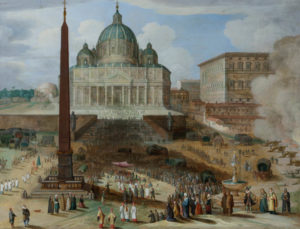 Domenico Fontana nacque a Melide nell’attuale Cantone Ticino (Svizzera) nel 1543. Esordisce come stuccatore a Roma a partire dal 1563, dove interviene nei cantieri del cardinale Ricci (gli attuali Palazzo Sacchetti e Villa Medici), nel Palazzo del Campidoglio e nella Chiesa Nuova in Santa Maria in Vallicella. È attestato anche a Villa d’Este a Tivoli nel 1568. Nel 1584 costruisce la Cappella Sistina in Santa Maria Maggiore per il cardinale Felice Peretti, futuro papa Sisto V, che diventerà il suo principale committente. La nuova cappella incorporò la duecentesca Cappella del Presepio di Arnolfo di Cambio: il piccolo sacello fu trasportato all’interno della costruzione utilizzando complesse macchine di cantiere. Per lo stesso committente costruì la grandiosa Villa Montalto alle Terme. Con l’accesso al soglio di San Pietro di Felice Peretti, Fontana , ricevette prestigiose committenze: costruì il complesso del Laterano che sostituì l’antico Patriarchio, con il Palazzo, la Loggia delle benedizioni e l’edificio della Scala Santa, il Palazzo Apostolico e la Biblioteca Apostolica Vaticana. È ancor oggi celebre per l’innalzamento dell’obelisco in Piazza San Pietro, impresa di cui pubblicò un resoconto nel suo libro Della Transportatione dell’obelisco Vaticano e delle fabriche di Sisto V, pubblicato a Roma nel 1590. Eseguì, inoltre, l’innalzamento di altri tre obelischi antichi nell’odierna Piazza del Popolo (Obelisco Flaminio), Piazza Santa Maria Maggiore (Obelisco Esquilino) e Piazza San Giovanni in Laterano (Obelisco Lateranense). Ottenne dal papa il titolo di cavaliere dell’Ordine dello Speron d’oro.