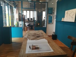 Entrare da Il Corniciaio, la bottega artigiana di Via Parini 6 a Gallarate, significa fare l’ingresso in un ambiente accogliente, dominato dalla tinta ottanio, colore scelto dai proprietari Lisa e Marco Borgomaneri. Proprio Lisa è l’anima del luogo: mi spiega con pazienza e soprattutto amore come è nata anni fa l’idea di affiancare all’attività di famiglia uno spazio espositivo.