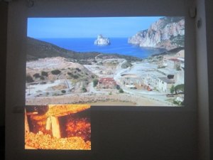 Accanto al logo dei minatori sardi compare uno spaccato di roccia il cui rimando è a due video posti l’uno accanto all’altro.
