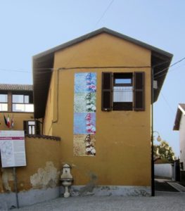 Così è accaduto che l’artista GP Colombo sia stato invitato, nell’ambito di Cantieri d’Arte, presso il Comune di Tornaco, a comporre un’opera da collocare sulla parete est di Villa Marzoni sede del Museo Etnografico della Bassa Novarese, con la prospettiva futura di proporre ad altri artisti uguale opportunità.