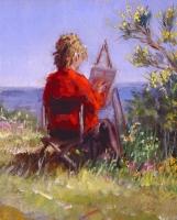 In questa Galleria d'Arte, ormai storica per Tradate, da sempre diretta da Giancarlo e Mirko Spina questa volta sono protagoniste le opere di piccolo formato di Aldo Parmigiani e vi è un filo rosso che le unisce, un figurina deliziosa di fanciulla che ci volge le spalle, perché è intenta a dipingere: innanzi a lei vi è un cavalletto e un paesaggio che non aspetta altro di essere ritratto.