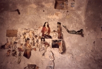 Opera di Pietro Cacciaquaggiù', oppure sul soffitto, a simboleggiare il desiderio di libertà che mai può essere represso, troviamo queste parole: 'la vista di qualsiasi cosa mi consola, mi fa pensare…e con essa io spicco il volo…' illuminate dalla luce proveniente dalla finestra. Ecco dunque come un tema così ampio come quello della libertà possa essere affrontato utilizzando il mezzo fotografico: il fotografo ritorna più volte a evidenziare la forza della luce che penetra l'oscurità, metafora della speranza che tiene in vita gli uomini. Altre volte invece ricorre all'uso di alcune comparse che, come presenze fantasma, vagano ancora lì dove il tempo sembra essersi fermato.