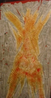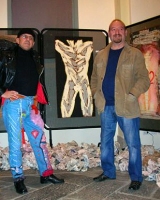 'Vi.Vi.su Oro'Un ambiente come nuovo – E' bastato poco per dare alla sala comunale Fallaci un aspetto nuovo e vivo: cumuli di fogli di giornale accartocciati e dislocati ai lati della stanza e musica di sottofondo per completare la fruizione delle originali opere di Pasquale Bagatin. Stilista di professione, Bagatin da quattro anni compie una ricerca artistica che indaga materiali a lui familiari, da quelli strettamente legati alla moda, come jeans e manichini, a quelli di uso quotidiano, come stracci e fogli di giornale. Nascono così manichini dipinti e jeans-sculture, squali di feltro e grifoni di garza dall'aria minacciosa, foreste amazzoniche tra le pieghe dei tessuti.