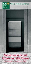 Partic. invitoI quadrati e l'essenza – Stanze appositamente realizzate per le Scuderie di Villa Panza, documentano un'indagine espressiva che fonde la tradizione di Giorgio Morandi all'attualità di Lawrence Carroll. La scelta di un'artista come Gianriccardo Piccoli, per la mostra nella sede varesina del FAI, prende corpo dalla medesima "filosofia" che caratterizza il gusto collezionistico di Giuseppe Panza di Biumo: il purismo, la liricità, l'essenzialità. Segnalato sin dagli anni '60 come esponente della cosiddetta "figurazione esistenziale", Piccoli ha proseguito lungo un percorso scandito da prestigiosi riconoscimenti: nel corso degli anni '70 l'artista approfondisce l'indagine sugli oggetti del quotidiano e sul paesaggio, temi e soggetti che resteranno ricorrenti nella sua produzione successiva. Negli anni '80 arriva il riconoscimento pubblico del suo lavoro, attraverso il premio Feltrinelli nel 1984, la mostra personale al Teatro Sociale di Bergamo e la partecipazione alla Biennale di Venezia nel 1986.