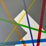 Il rigore cromatico e il linguaggio delle forme che si viene a creare in un continuo sovrapporsi di strutture geometriche che sembrano cerchino di incastrarsi l’una con le altre, non solo è pulito e razionale, ma si rapporta con il fondo che appare come elemento di dialogo costante in un effetto tridimensionale.