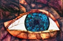 Una delle opere in mostraOriginario di Dolhasca, Alin Constantin Agape è nato l'otto maggio del 1983 a Suceava, una piccola città sita nella Moldova, nel nord della Romania. Fin dall'infanzia trasporta nei disegni i paesaggi rigogliosi della regione, insieme ai personaggi delle fiabe tradizionali. A 11 anni va a studiare nella scuola media di arte, a 14 anni frequenta il Liceo Artistico "Octav Bancila" nella città Lasi, grande punto culturale. A 19 anni s'iscrive all'Università di Belle Arti, sempre a Lasi. In seguito agli insegnamenti di Dragos Patrascu, il più importante grafico della Romania, orienta la passione per il disegno verso la grafica, e già al termine degli studi artistici le sue opere sono esposte in diverse collettive e personali, con buon riconoscimento di pubblico e critica. Successivamente, definisce il suo stile nella realizzazione di vetrate artistiche, in cui colori e forme sono esaltati dal passaggio della luce. Sulla scorta dell'educazione religiosa ricevuta, realizza numerose vetrate per diverse chiese del Paese, affinando nel tempo una poetica personale intorno al simbolo della croce. Dal 2010 vive a Palermo, dove insegna disegno e pittura presso la scuola "Benedetto d'Acquisto".