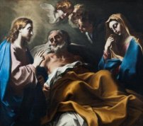 Nella tela gemella dedicata al Transito di San Giuseppe sembra invece prevalere la componente più accademica dello stile di Legnanino, che per l'impianto compositivo si appoggia all'autorità di due modelli di Carlo Maratta e adotta una conduzione pittorica più salda, dal chiaroscuro più risentito e dalla costruzione disegnativi maggiormente evidente, specie nei volti di Cristo e della Vergine.
