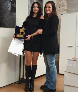 Nell’immagine Carla Pugliano con Stefania Pieralice (Presidente di Giuria e già curatrice della Biennale di Venezia e della Triennale di Roma)