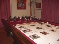 La grande sala che ospita l'esposizione ha al centro un tavolo da biliardo, piano d'appoggio che ha stimolato la fantasia dell'artista che ha creato una serie di piccole "statue-gioco" da collocarvi sopra, spezzando il vuoto che si sarebbe creato dalle sole opere parietali.