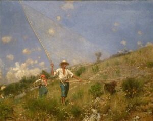 Non era tuttavia solo così (anzi!) l’Italia della seconda metà dell’Ottocento: problemi tanti e gravi non mancavano; la povertà dilagava, le cucine economiche per un pasto a buon mercato non avevano mai un posto libero come si vede nel quadro di Attilio Pusterla, l’ “amore venale” era diffuso e lo colse nella sua scabra realtà Angelo Morbelli, il lavoro dei bambini nelle fabbriche, molto duro ed estenuante, era una piaga. Qualcuno di loro sfuggiva però a fatiche così brutali: per i ragazzi chioggiotti di un quadro di Leonardo Bazzaro era solo un gioco la Scelta delle moeche e per la Piscinina del Longoni c’era la speranza di una mancia portando il vestito a una signora sicuramente ricca. Giusto come poteva essere la madre che nella tela di Italo Nunes de Vais saluta con un bacio la figlia dal finestrino di un treno in partenza verso mete lontane. Proprio come sarà per l’Italia e anche per i suoi artisti.