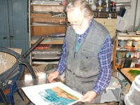 Paul Scharff, che vive e lavora a Cittiglio, dietro alla ruota del torchio pare un capitano di lungo corso che naviga tra le pagine dei libri e gli inchiostri delle sue visioni interiori, sorridendo ai marosi della vita. Egli appartiene a quella schiera di artisti stranieri che hanno trovato, nella provincia di Varese, un luogo di frontiera, geograficamente intrigante e foriero di pace e concentrazione.