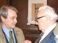 Ginetto Piatti con il genero di Vittorio Tavernari"Questo è stato un grande artista e forse in molti non lo hanno capito, anche in questa città", era il commento convinto e rammaricato di un appassionato d'arte varesino, frequentatore d'artisti, davanti alle Carte di Vittorio Tavernari, in mostra a Villa San Martino di Barasso, per le cure dell'amico Luigi Piatti.
