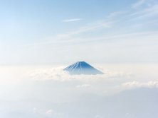 Naoki Ishikawa raffigura la punta del Fuji come un'isola fra nubi che paiono onde e si fondono con l'azzurro del cielo quasi ad assumere lo statuto di luogo fiabesco.