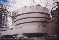 Il museo di Lloyd Wright a New York – Fu terminato dopo la morte del committente, ma "fin dal progetto iniziale", precisa Sacchetti, "Wright desiderava che l'edificio s'imponesse per struttura ed illuminazione nel tessuto urbanistico newyorkese e propose al pubblico una passeggiata attraverso il percorso collezionistico di Solomon". Un tragitto segnato sì da grande intuito per l'arte d'avanguardia, ma connotato anche dalla filosofia Guggenheim, secondo cui tra artista e collezionista non doveva esserci alcun intermediario nell'acquisto dell'opera. Solomon era solito infatti scegliere le opere della sua collezione direttamente dal cavalletto d'artista. Proprio per questo Wright suddivise lo spazio del suo museo in alcove simili a studi d'artista nelle quali i dipinti dovevano essere lasciati a terra, appoggiati alla parete perimetrale inclinata, come se si trovassero su di un cavalletto, illuminati dalla luce zenitale proveniente dall'esterno. Il particolare allestimento non fu, purtroppo, compreso dal nuovo direttore della fondazione Guggenmheim, Swenay, che lo snaturò completamente, facendo inserire nelle nicchie pannelli ai quali appendere i quadri e degli impianti di illuminazione artificiale per l'inaugurazione del nuovo museo avvenuta nel l952.