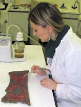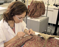 Una restauratrice del Consorzio Non solo mimose – Ma chi si "prenderà cura" dello stendardo, oggi ammalorato a causa degli effetti del tempo e dell'incuria? È presto detto. Verso la fine di marzo il prezioso vessillo sarà preso in carico dal Consorzio Artigiano "Tela di Penelope" di Prato (www.teladipenelope.com). Il Consorzio, costituito nel maggio 2002, rappresenta un bellissimo esempio di imprenditoria femminile altamente specializzata e qualificata anche perché la "textile conservation" è parte di un progetto nato e sviluppato in seno al Museo del Tessuto di Prato. Ad oggi il Consorzio (che fornisce anche servizi di consulenza ed expertise e supporti per materiali tessili in mostra) è composto da Simona Laurini e Guia Rossignoli laureate in Tecnologie per la Conservazione dei Beni Culturali e diplomate all'Opificio delle Pietre Dure di Firenze in Conservazione e Restauro Tessile e Tae Alice Nagasawa, diplomata all'Opificio delle Pietre Dure di Firenze. Il Consorzio "Tela di Penelope" ha già al suo attivo il restauro conservativo del piviale in velluto (XVI sec.) del parato di S. Giorgio della Chiesa Parrocchiale di Bonnanaro (SS), esposto alla mostra "Il Cammeo Gonzaga. Arti preziose alla corte di Mantova" e il restauro dell'abito in raso di seta della Galleria Parmeggiani esposto nel 2005 al Museo Poldi Pezzoli di Milano. Attualmente le tre esperte si stanno occupando della revisione e della manutenzione dei tappeti del Museo Bardini di Firenze che riaprirà in marzo.