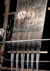 La simbologia di questa installazione si compone di diversi elementi che creano un effetto di sospensione: i fili, tirati sul telaio, sono in una fase di lavorazione ancora incompiuta e le forme geometriche dorate poste sul fondo controbilanciano il peso del filato. Tutto però è in bilico, in una situazione precaria che oscilla tra l'insita forza che la natura ha di ordire le trame della vita e l'arroganza propria di certi atteggiamenti contemporanei che invece tendono a contrastarla.