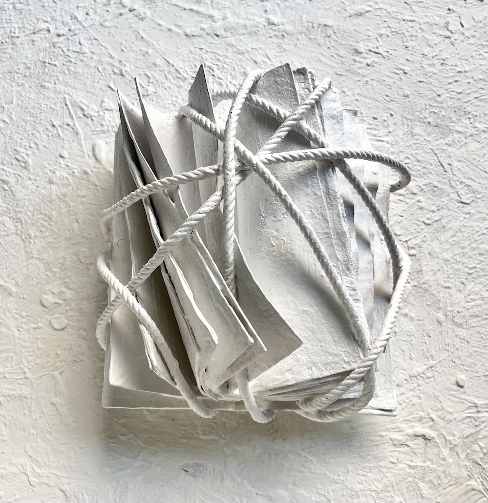 Raccolti tra volumi destinati al macero, nelle mani dei due artisti i libri diventano l’anima di sculture emozionali dove il gesso bianco e materico cristallizza narrazioni potentemente attuali alle quali non è possibile restare indifferenti. Dalla guerra al dramma dei migranti, dalla ricerca di un significato per l’esistenza alla salvaguardia della natura, temi attuali e millenari, personali e universali, emergono dalle loro sculture bianche; mai gridati, però, piuttosto sempre suggeriti, allusi, lasciando alla precisione della forma e al dialogo dei materiali il centro della scena.