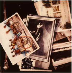 Foto e quadri disordinatamente sovrapposti cadenzano il tempo dei ricordi e della memoria a volte labile e refrattaria.