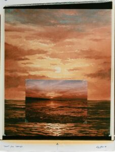 Un tramonto reale accanto ad uno raffigurato su un manifesto dice di quanto l’illusione sia simile alla realtà e viceversa.