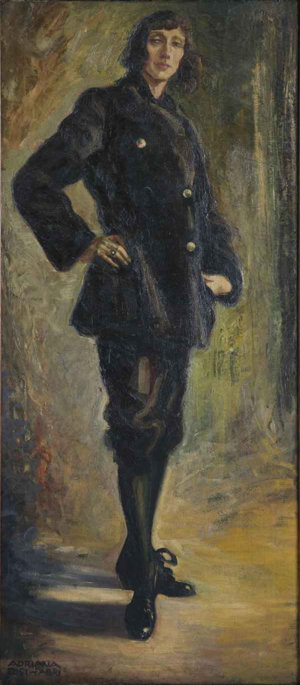 A sostenere e a stimolare Adriana contava poi la figura del marito, Giannetto Bisi, giornalista e scrittore, anche d’arte, e intorno alla coppia non mancava un giro di intellettuali, di artisti, finanche di politici, tutte persone di spirito libero, di buona cultura e partecipi al fervere delle svariate esperienze europee di primo Novecento. La Bisi fu coinvolta in prima persona in questo fervido ambiente e seppe dimostrarlo proprio nei suoi lavori. Non solo nelle grandi tele coi ritratti che vanno dritti al segno, ma anche nelle tante, tantissime illustrazioni che disegnò, sempre con mano sicura e penetrante, per svariate riviste come il “Giornalino della Domenica” o il “Popolo d’Italia” appena fondato da Mussolini, e ancora per
