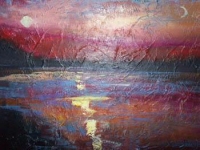 Tramonto violaIl provocatore ottico – Oggi la passione dell'artista si è trasferita salla pittura ad acrilico, ma il lavoro sulle ombre e luci, una ricerca astratta personale, ha segnato in modo particolare il cammino di Karen. Un tipo di studio che ha radici lontane, e che conduce l'osservatore ad una lettura interamente personale del risultato visivo. "Entra in gioco il provocatore ottico – spiega Karen – una macchia può essere interpretata in maniera diversa da ogni osservatore". Un rapporto tra questo genere di lavoro e di proposta artistica che fonda le proprie radici in grandi maestri del passato, "da Leonardo Da Vinci fino ai Surrealisti", sottolinea l'artista. Una ricerca imprescindibile comunque dalle esperienze che hanno formato Karen nel corso degli anni. Diplomata al Liceo Artistico di Varese, cambia poi il cammino di studi, diplomandosi in Infermieristica e successivamente in arteterapia a Busto Arsizio. Da qui la strada che la conduce ad affiancare l'arte ad altre discipline; Karen realizza anche workshop espressivi utilizzando tecniche di arti-terapie, ispirandosi a Bruno Munari e ai linguaggi tecnici dell'arte moderna e contemporanea. Esperimenti con la creatività che coinvolgono l'immaginario e la passione di persone di ogni età.