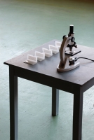 Terreno fertile – Cabinet de regard: Aiuola d'attesa, l'altra importante opera presentata e strettamente connessa alla precedente vede ricadere l'attenzione su frammenti delle opere degli illustri nomi della storia dell'arte contemporanea italiana ed internazionale seminati nella speranza che un sano humus artistico contribuisca ad arricchire la realtà. "Il microscopio è un oggetto indispensabile per il mio Museo – racconta Elisa – in questa opera ho voluto riportare due schedari, due archivi in cui ho raccolto, in uno, i frammenti degli artisti coinvolti nella mia collezione e nell'altro ho ordinato non solo in ordine alfabetico, ma anche a secondo dal luogo e della mostra da cui provengono tutti i miei frammenti".