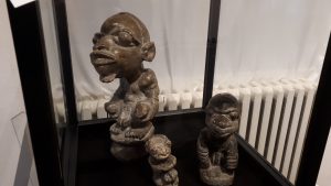 Vogliamo far conoscere la profondità dell’arte dell’Africa nera attraverso tre aree tematiche. Statue, maschere e oggetti di culto sono illustrati in un percorso che si articola in: “riti per la vita”, “sovrumano” e “riflessioni e simboli”. Alcuni oggetti sono molto significativi: abbiamo esposto tre “Nomoli” che sono tra i rari casi di arte africana in pietra. Queste sculture sono presenti anche al Louvre o al British Museum. Sono oggetti misteriosi, perché non sono a oggi ascrivibili a nessuna cultura africana tra quelle conosciute, hanno una datazione incerta, nelle campagne di scavo sono stati trovati in strati geologici antichissimi che porterebbero a considerarli degli oggetti preistorici e non se ne conosce la funzione anche se potrebbe essere legata alla fertilità parlando di popoli agricoltori, e forse venivano seppelliti nel terreno per favorire la crescita della vegetazione.