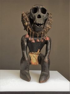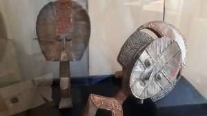“Kalao”. C’è anche una maschera Grebo, oggetto che ha ispirato Picasso nelle sue ricerche sul cubismo: si tratta di un piano da cui emergono in tridimensionalità le fattezze del viso umano con questa moltitudine di occhi che tutto vedono e tutto controllano. E poi abbiamo dei reliquiari Ba Kota che rappresentano il corpo umano fortemente stilizzato e venivano disposti sopra i resti del defunto di rappresenta il suo spirito, quella che noi chiamiamo anima. Infine sono esposti resti di animali trasformati in sculture che simboleggiano lo