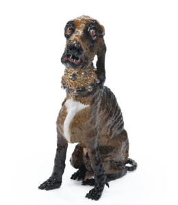Smit concepisce ogni scultura come un’entità autonoma, destinata a esistere indipendentemente dall’artista stesso, se osservate da vicino, le superfici sembrano costruire un’immagine disegnata nello spazio, trasformando ogni figura in un’opera che cattura lo sguardo e invita l’osservatore a perdersi nei dettagli. Gli animali, così spesso presenti nel suo immaginario, assumono un’aura che va oltre il loro aspetto: sono creature vulnerabili e allo stesso tempo portatrici di un segreto. I “Bloedhonden” , con i loro occhi malinconici e i corpi segnati,