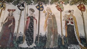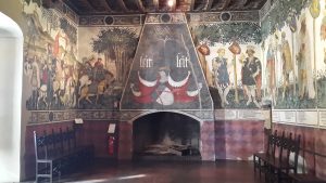 Tra il 1416 e il 1426 un anonimo pittore ci regalò questa rara testimonianza di affreschi tardogotici profani, in un periodo nel quale la stragrande maggioranza dei dipinti pittoriche erano, come è noto, unicamente a soggetto sacro. Qui, a differenza delle altre pitture, vengono raccontate le passioni della società aristocratica del tempo, la cultura cavalleresca, i suoi miti, i suoi ideali e i suoi codici di comportamento.