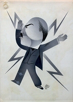 Vibrazioni – Su questa linea, è interessante scorrere la galleria di libere interpretazioni riservate alla sua esplosiva carica energetica: più di tutti il gesso maschio, in pieno stile romano-imperiale, realizzato da Ernesto Michahelles Thayath, "Marinetti altoparlante italico"; o ancora il "Ritratto dinamico di Marinetti" fotografia furturista di Tato, posto di fronte ad una immagine scattata invece da Anton Giulio Bragaglia, entrambi pionieri dell'immagine dinamica. Ma forse quello che più riassume la figura di Filippo Tommaso, è racchiuso nel piccolo disegno a inchiostro di china, realizzato nel 1932 da Paolo Federico Garretto: "Marinetti elettrico". L'ormai accademico ideologo, sempre impeccabile nella sua compiuta eleganza borghese, emana scariche elettriche come fulmini, come un novello Thor. A distanza di un secolo, quella furia di Marinetti è ancora capace di far avvertire nell'aria strane vibrazioni.