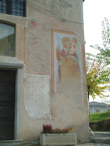 In facciata sopravvive un'ombra dell'originaria decorazione ad affresco. Ancora negli anni '60 si potevano vedere chiaramente le altre figure che oggi, purtroppo, soprattutto a causa dell'inquinamento, risultano solo delle offuscate sagome dai contorni incerti.