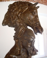 Dettaglio opera di Augusto PerezI grandi nomi del '900 – Camminare a Materima è come essere nello studio di un grande scultore. Il profumo della materia, le ombre di grandi figure, austere, dure, pesanti. La vista contempla le opere di mani di un tempo, di personaggi che hanno fatto la storia e molti di loro ancora la stanno scrivendo. Già dall'ingresso, da un primo sguardo al giardino, al cortile, al porticato, possenti opere d'arte ti accolgono.