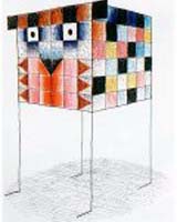Un'opera dell'artistaminaccioso e dell'orto indifeso o Paese non omologato a suscitare sentimenti romantici). Così commenta Marta Morazzoni nel testo in catalogo: "sembra che l'idea lì esplicitata dall'autore si divincoli da un progetto logico, scavalchi il senso della ragionevolezza e approdi in un prato o prenda il volo, lieve e beffardo, verso un cielo di colori e di linee".