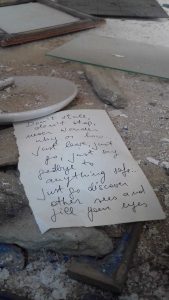 Sbircio dentro alla finestrella di una delle due cappelle e trovo un indizio. Qualcuno ha lasciato un messaggio. Forse davvero per noi.