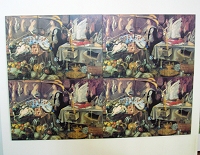 Un'altra opera dell'artistaPiccoli musei invitano al viaggio – Arcangelo, Jorge Eielson, Marco Di Giovanni, Andrea Facco, Jean-Michel Folon, Piero Gilardi, Ferdinando Greco, Alberto Storaci, Ketty Tagliatti, Franco Marrocco, Jorunn Monrad, Adele Prosdocini, Alessandro Verdi sono i nomi degli artisti della collettiva che si sviluppa al primo piano della galleria "Il Chiostro". Tutti, a loro modo, esprimono il valore del merchandise, come i 5 ritratti di Di Giovanni ripresi da banconote venezuelane dove l'arte prende ispirazione dall'oggetto principe del commercio, il denaro, o come l'acquerello di Folon, riproducente una fiammella, la stessa che poi è diventata simbolo di una pubblicità per un noto gestore del gas: vale a dire che l'arte può anche essere al servizio del commercio. Questi ed altri esempi costituiscono quello che è il piccolo museo degli Affanni che, con Giannetto Bravi, condividono una sorta di desiderio compulsivo che li spinge a collezionare. Oggi l'arte contemporanea dà la possibilità di sfatare il mito dell'arte elitaria, facendoci diventare un po' tutti protagonisti e collezionisti di piccole, ma preziose opere d'arte, tutti in qualche modo siamo capaci di creare dei musei personali, proprio come quello di Giannetto e degli Affanni. Un'arte accessibile a tutti quella delle piccole quadrerie, le quali, per citare il titolo dato al catalogo antologico di Bravi dal curatore della mostra, Roberto Borghi, sono un "perpetuo invito al viaggio".