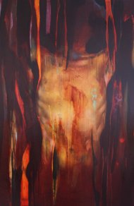 Se la dicotomia tra corpo e volto è il nodo della ricerca dello scultore tedesco, il pittore inglese Tomas Watson (Sussex, 1971. Vive e lavora ad Andros) dipinge figure umane, mostrate di spalle o di tre quarti di cui è impossibile scorgere i tratti del viso o la totalità della forma. La frammentarietà assurge a chiave interpretativa dell'identità. Sfondi accesi paiono, in certi casi, fondersi con il soggetto, in altri, invece, sembra che i corpi escano fuori -quasi scappino- dalla tela, il tutto senza togliere la centralità all'incarnato, alla resa della pelle e dell'età incerta del soggetto. La lezione di Bacon e Freud è ancora viva e vivida in Watson. Diversi, non solo per tecnica, ma anche per soggetti e taglio compositivo sono i suoi collage: il pittore introduce oggetti trovati per caso all'interno delle sue tele creando una sorta di racconto per immagini alla ricerca di una dignità essenziale ed esistenziale.