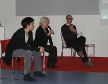 Un momento della conferenza – Claudia Losi, Francesca Pasini e Nico Vascellari