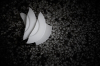 M. Talone, White memory, 2010 – CaraglioSeconda chance – Miki (Michela) Tallone gioca con la materia e sceglie di utilizzare dei fogli leggeri, usati come protezione delle lastre offset e separati dalla macchina di fotoincisione solo un attimo prima che le lastre vengano incise. L'artista permette così a queste veline leggerissime di avere una seconda possibilità di riscattarsi da "un destino anomalo per dei fogli di cellulosa: il dover rimanere orfani del linguaggio. Infatti solo la lastra metallica viene incisa, mentre questi fogli, ancor vergini, vengono tolti e buttati via", spiega Cristini. Il titolo dell'installazione, Mute, appare evidentemente plurisemico, con molteplici significati in italiano, inglese, francese.