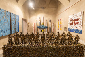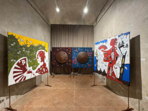 In questa mostra, lo sguardo di Galgani va dall’omaggio a grandi protagonisti della cultura – come nel ciclo dedicato a Giacomo Puccini nell’anno dell’anniversario della morte – alle “presenze” del paesaggio con la serie degli Alberi nomadi, ovvero installazioni – ottenute mescolando pezzi di legno, colore ed altri materiali – in cui l’albero, non più stanziale, si mette in movimento per esprimere, sul piano simbolico, un radicamento alla propria cultura, al proprio territorio, che non sfocia nell’essere “radicali”, e quindi non chiude né limita il pensiero, ma anzi lo facilita, lo rende possibile, perché consente di portarsi dietro un patrimonio identitario che diventa ricchezza da condividere.