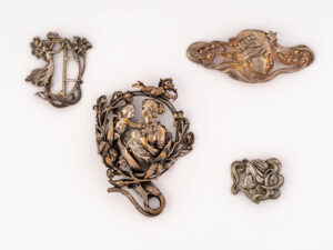 La mostra è una gallery di pezzi straordinari, selezionati dalla prestigiosa collezione Pennasilico che conta migliaia di esemplari e che si è formata in decenni di appassionata ricerca, vantando fibbie di grande valore insieme a piccole curiosità e pezzi di assoluta originalità: dalle fibbie Rococò da scarpa del Settecento in antimonio e strass, alle grandi e geometriche in bachelite dell’epoca Decò, passando da capolavori di arte orafa alle sinuose fibbie dalle forme naturalistiche dell’Art Nouveau.