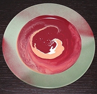 Fantasia in rosso è un dipinto eseguito su un piatto di ceramica e simboleggia semplicemente lo stato d'animo del momento. Appare come un concetto banale ma la condizione vitale è soggetta a repentini mutamenti e la descrizione di un umore è tutt'altro che semplice. Già un minuto dopo i colori sarebbero potuti essere diversi".