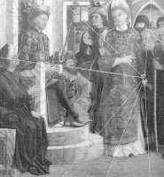 Analisi dell’opera di Michael PacherDiviene logica quindi l’ipotesi di un precedente viaggio di Michael a Padova. Non dobbiamo comunque vedere questo processo creativo come una progressione lineare, sopratutto se la paragoniamo alla tavola analizzata precedentemente. Così facendo si correrebbe il rischio di prendere in considerazione unicamente i segni esteriori, impedendo quindi di cogliere i nessi sostanziali o la struttura interna di un’opera (Otto Pächt, Historische aufgabe Michael Pachers, Lipsia 1931). Infatti dopo questa tavola l’autore tornerà a proporre composizioni polifocali ed altre con convergenze legate al singolo piano. Un ulteriore esempio di questa spazialità ci verrà offerto dalla portella esterna del monumentale altare di san Volfango, come il Cristo con l’Adultera del 1481.