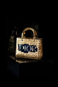 Tassello dopo tassello, in modulata successione, Fabrizio Plessi accosta le valenze simboliche dell’oro e del mosaico alle proprietà estetiche e pratiche di Moasaica, borsa creata per Dior.