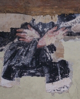 Un particolare dell'affrescoLa scoperta – Medaglioni istoriati affiorano sotto gli intonaci del Convento del Crocefisso a Tradate. La scoperta è avvenuta, proprio nelle ultimissime ore, in seguito a rilievi preliminari in corso nella parte più antica del Convento dei Padri Serviti di Tradate, a cura dei restauratori, Rossella Bernasconi e Leonardo Camporini. Sono emersi negli spazi dove un tempo si trovava il refettorio dei Frati, identificato nella parte più antica: tolti i controsoffitti e sollevato delicatamente l'intonaco sono emersi frammenti di affresco, inscritti, ben visibili, in tondi decorati. Nel più leggibile, si vede una figura con le due mani congiunte, una veste nera secondo la regola del Frati Serviti e soprattutto vi è un cartiglio con inscritta la frase ‘Tantus labor non sit cassus', tanto travaglio invano non sia stato, derivata dal Dies Irae, attribuito a Tommaso da Celano.
